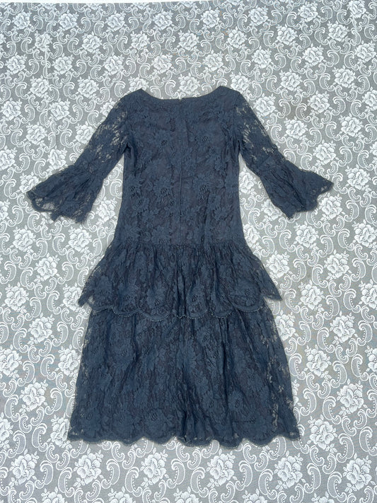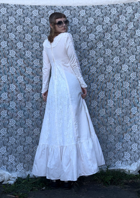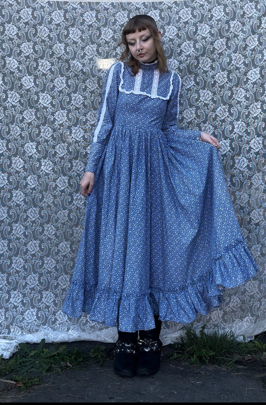 70S AUTHENTIC LAURA ASHLEY BLUE FLORAL N LACE PRAIRIE DRESS
