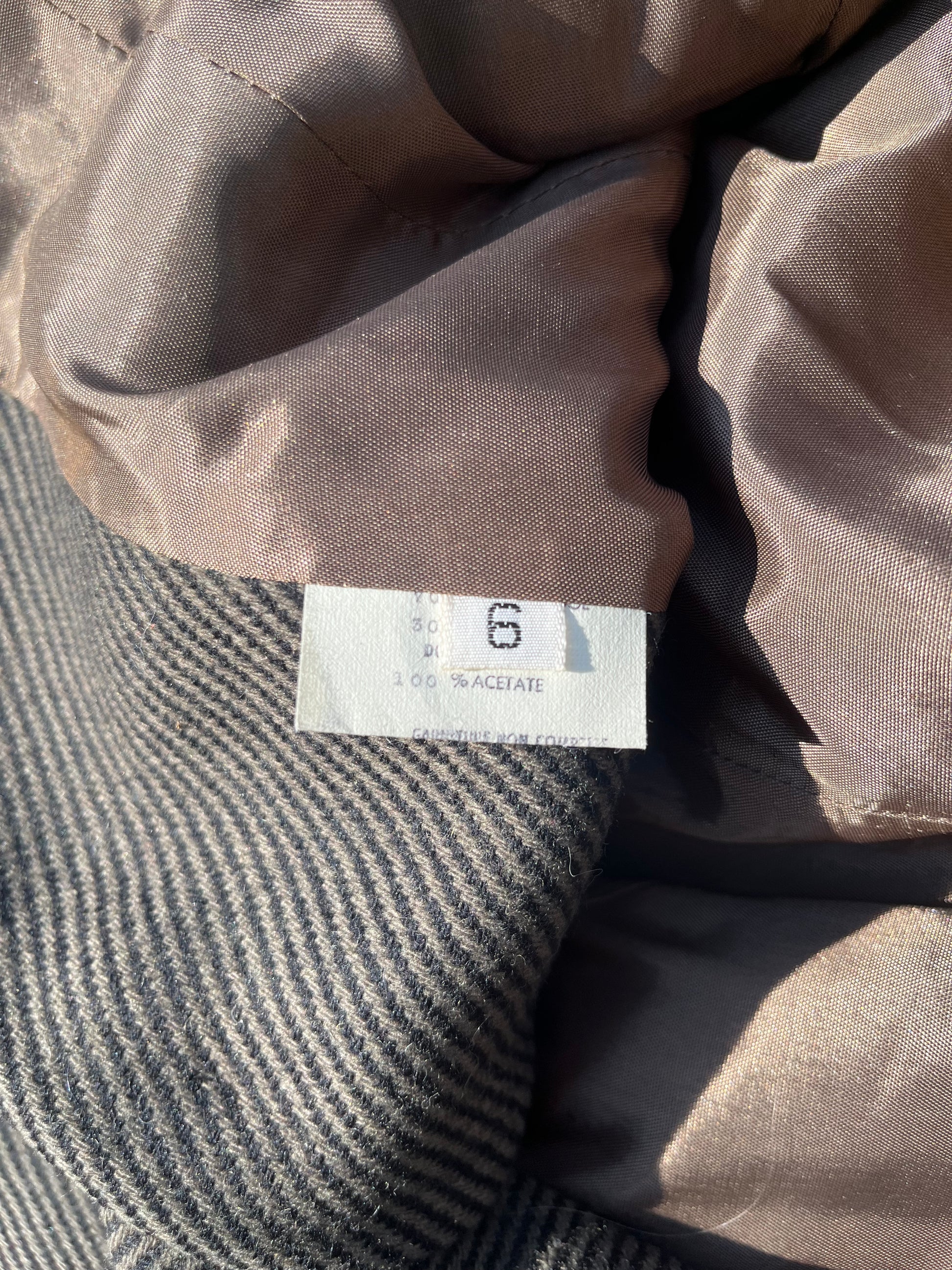 TOP: tag says size 6. shoulder width 15 inches (padded). length 21 inches. sleeves 24 inches long. waist 30 inches.