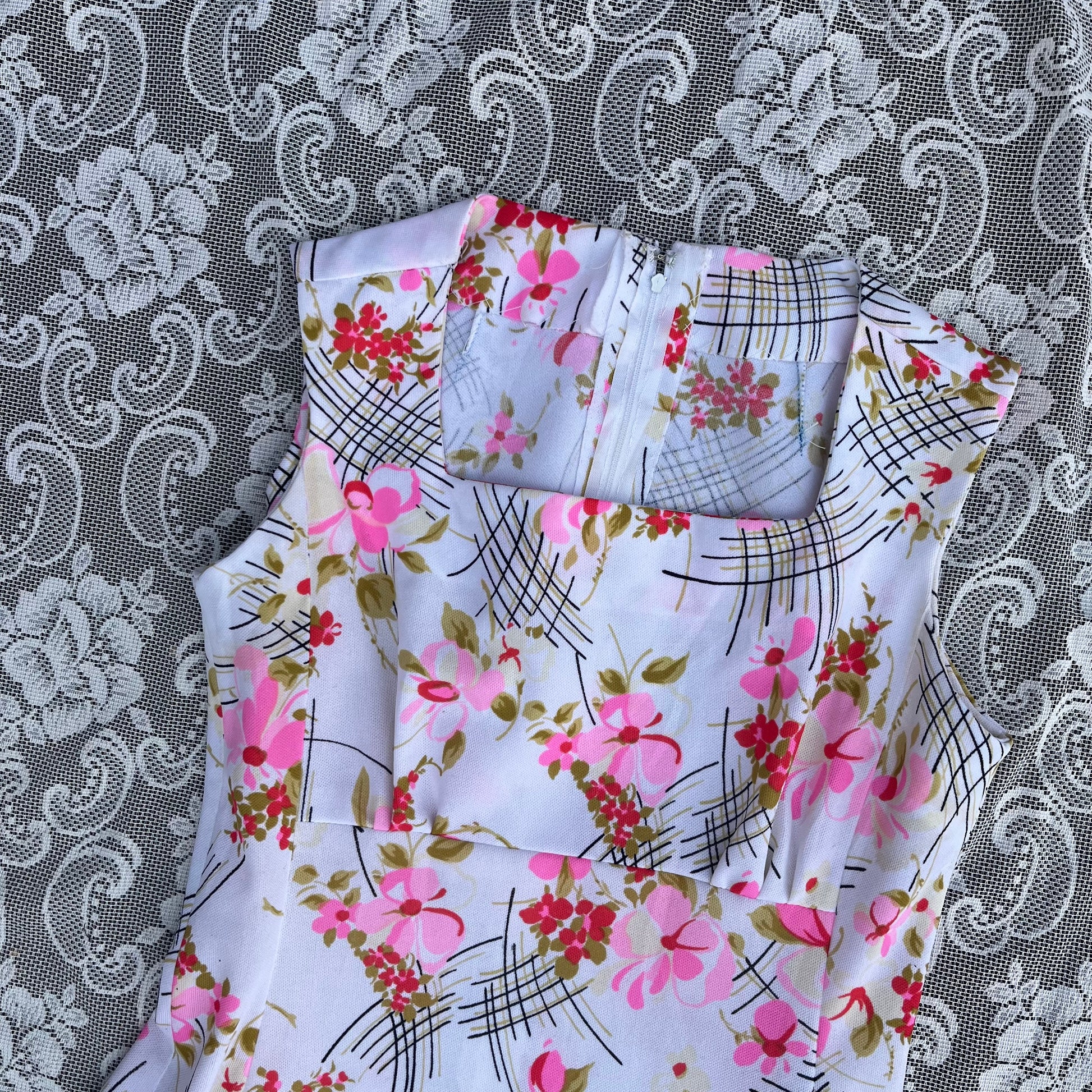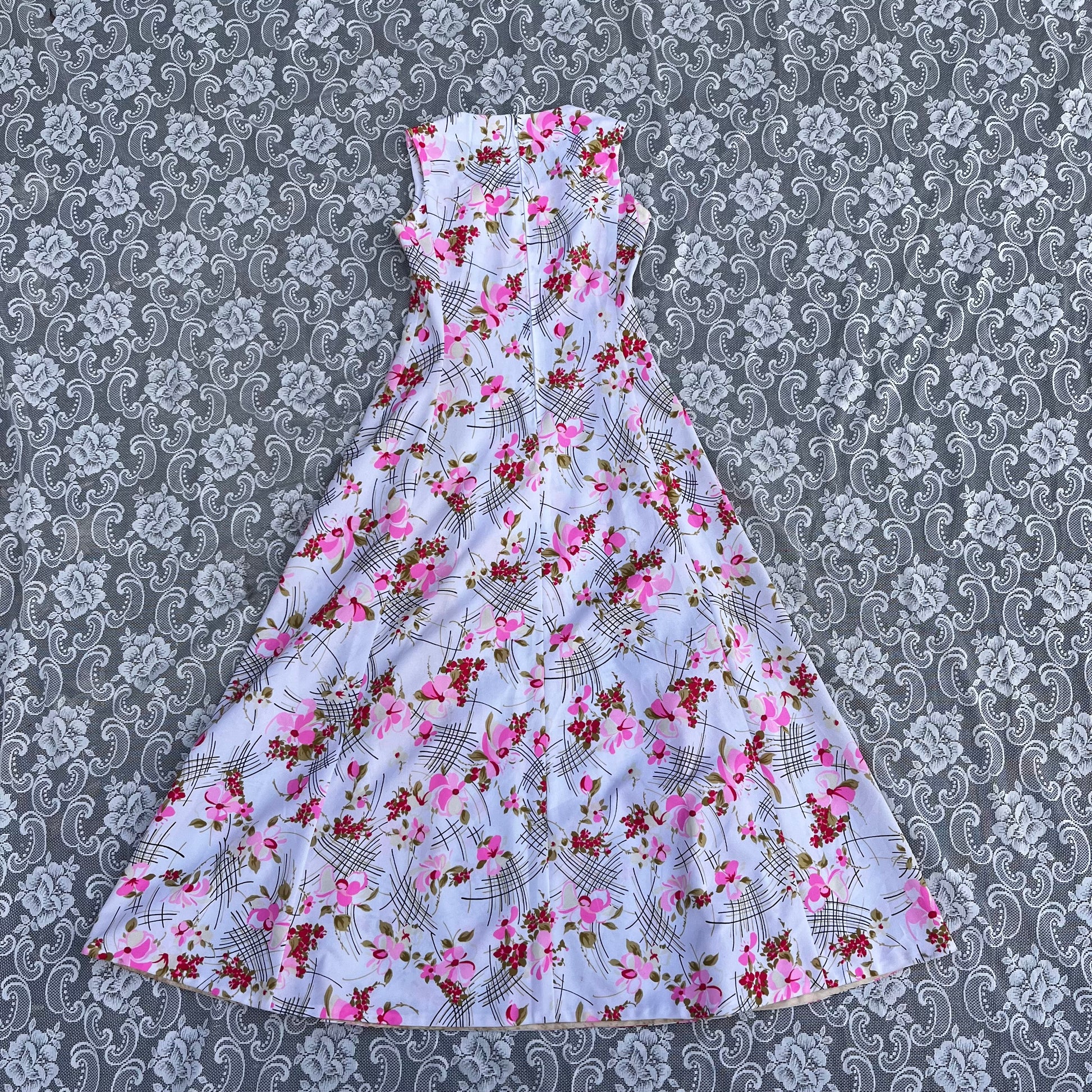 70s handmade white/pink floral dress