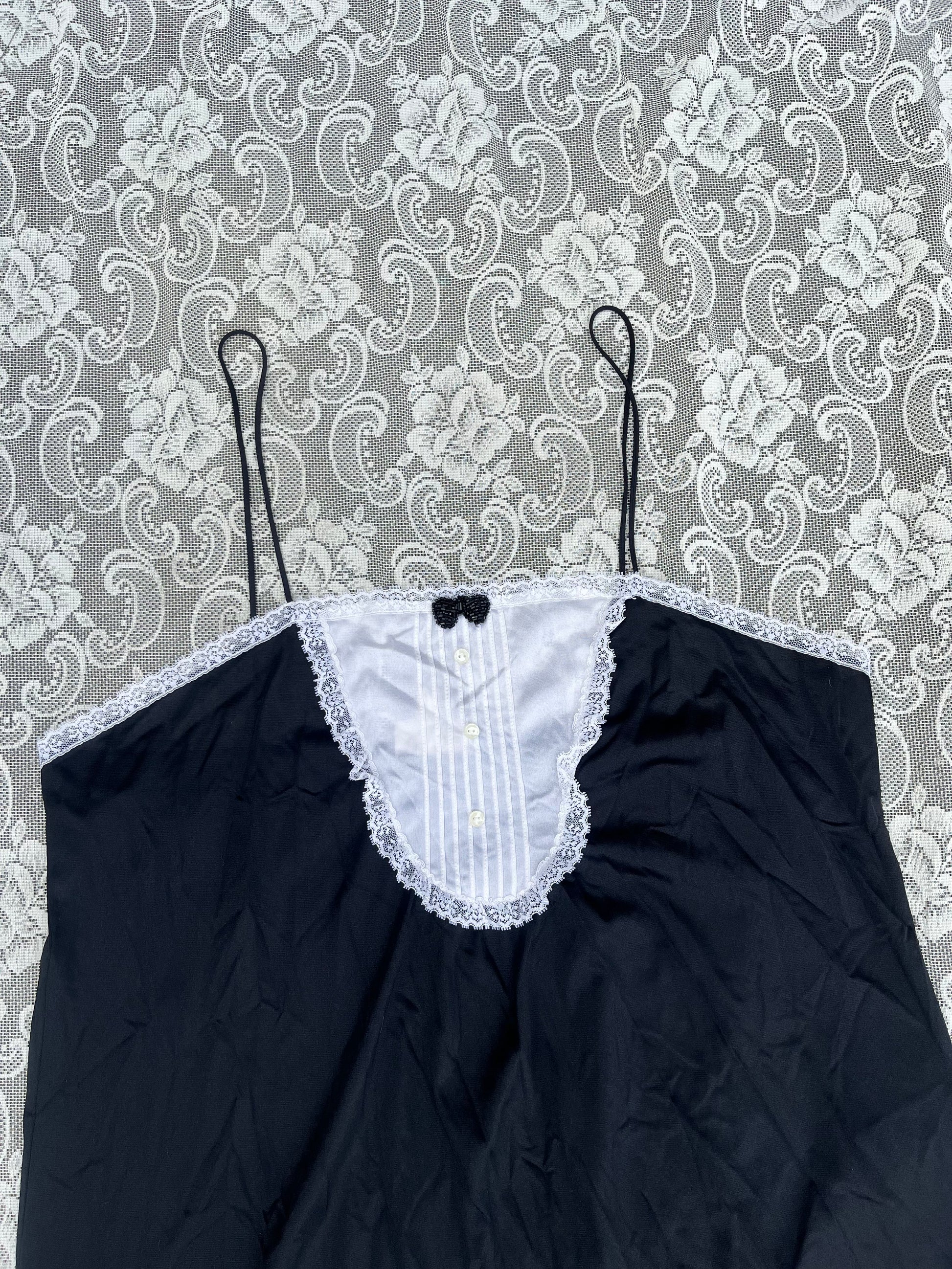 dopest slip in the world. little beaded bow on the top. could use a steam but otherwise perf condition. tag says size 1XL. pit to pit 21 inches (and really the whole thing too because it’s just a tube of fabric…). straps 19 inches. length 49 inches.