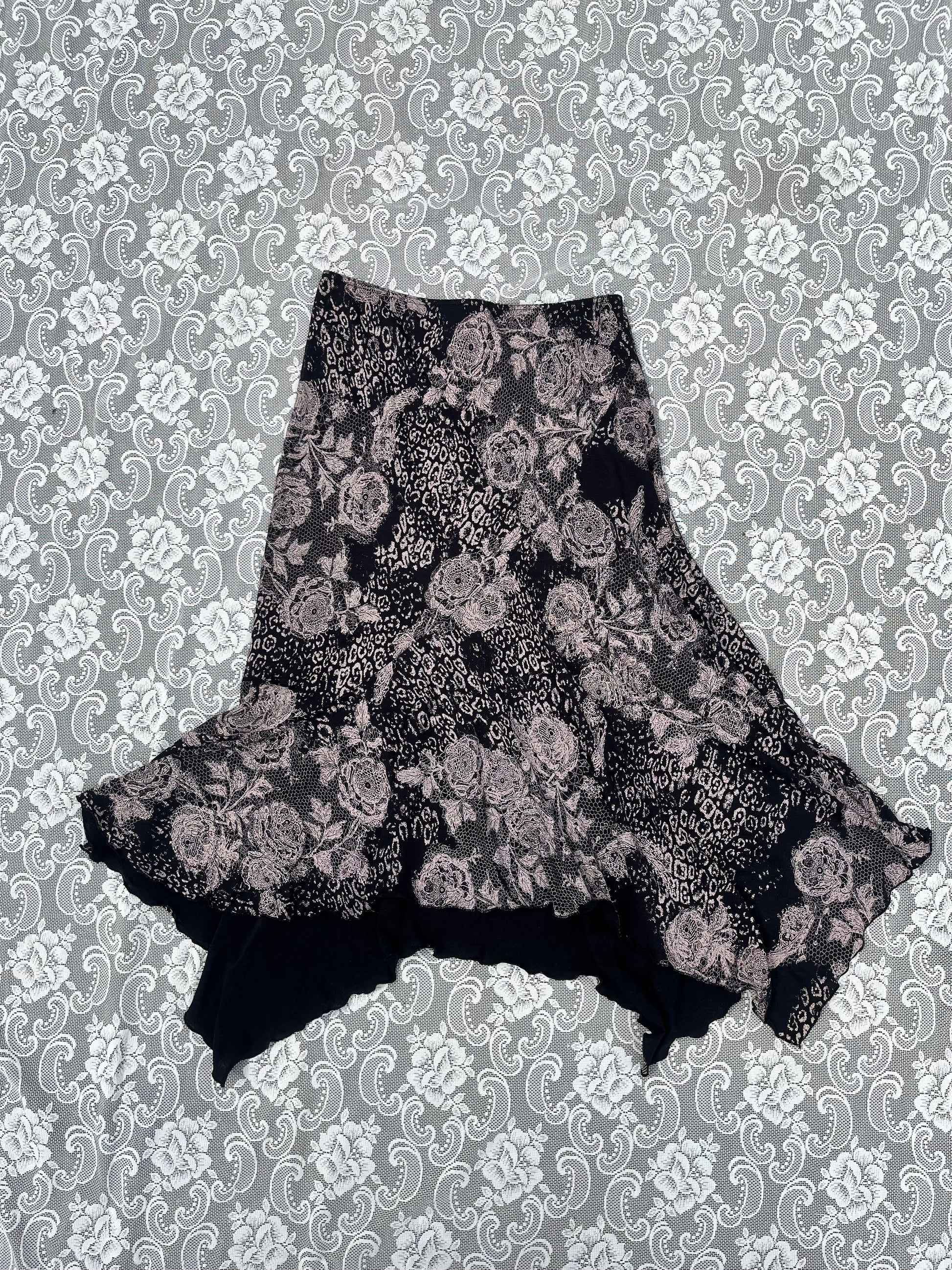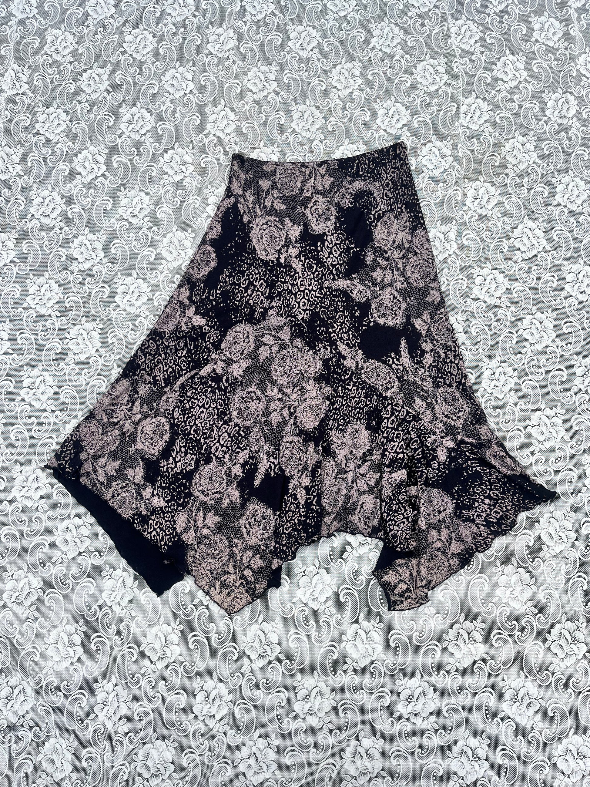 90s lace print asymmetrical skirt