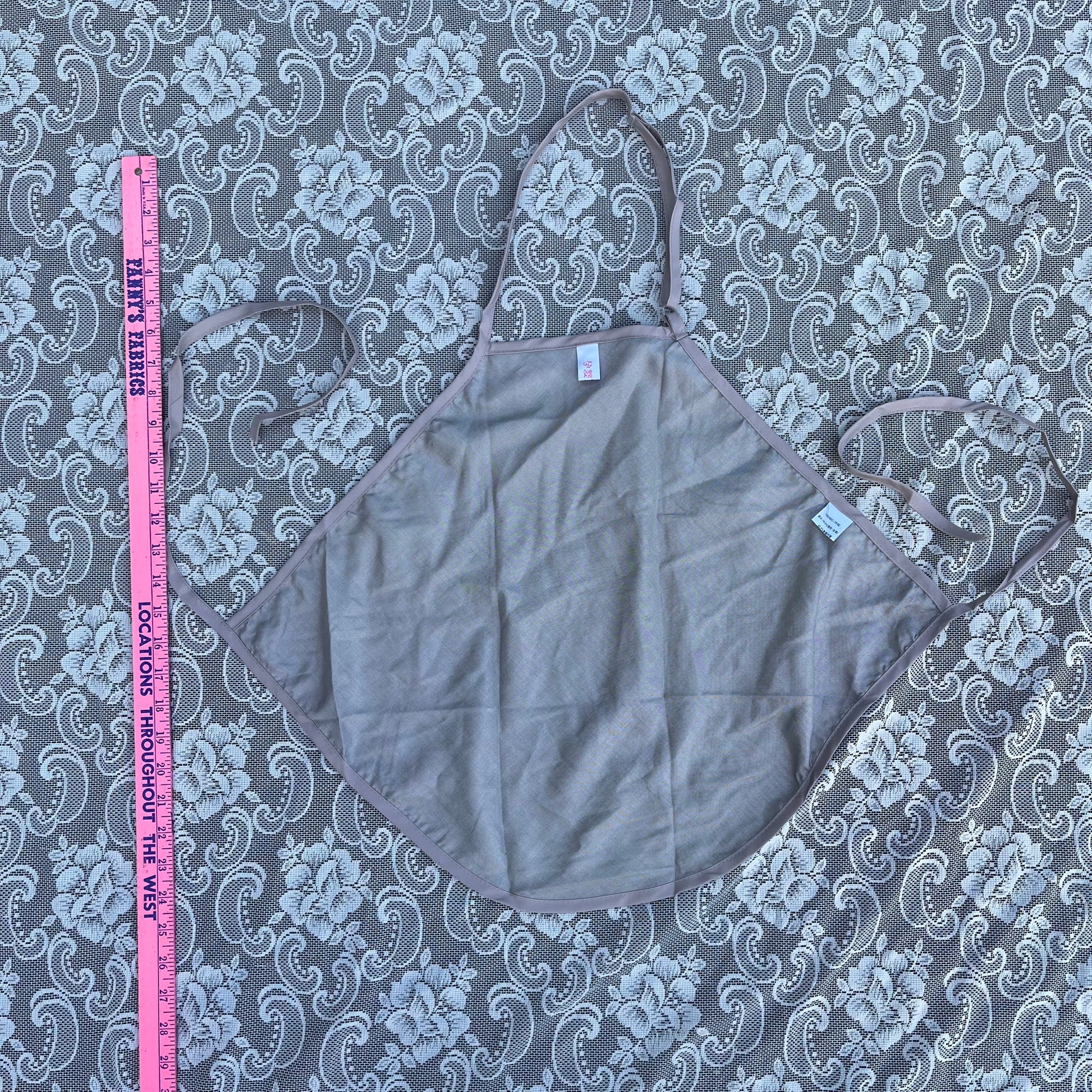 super thin fabric n totally adjustable, the top strap is able to be adjusted n the back is just a tie. length is 21 inches and width is 27.5 inches.