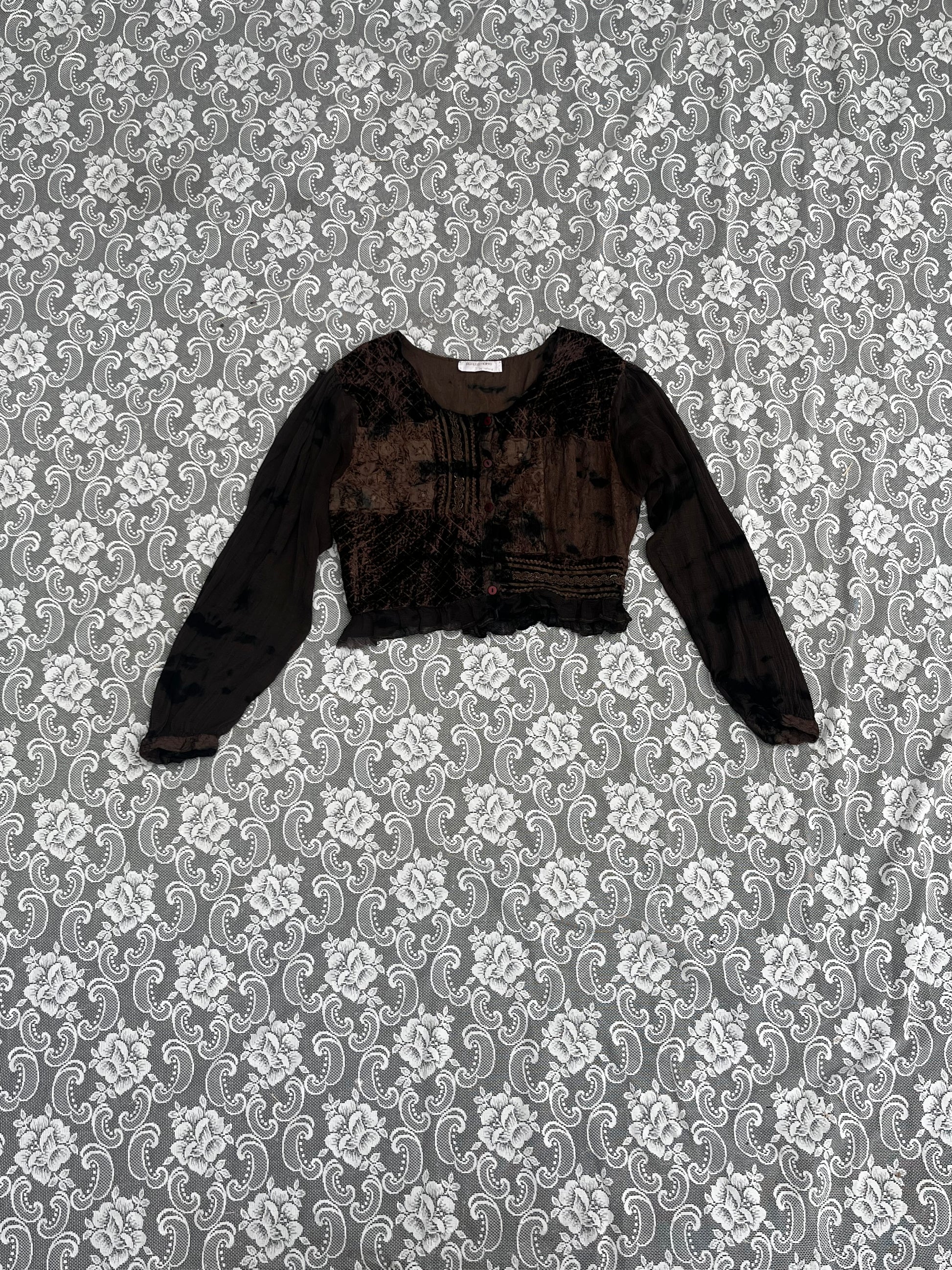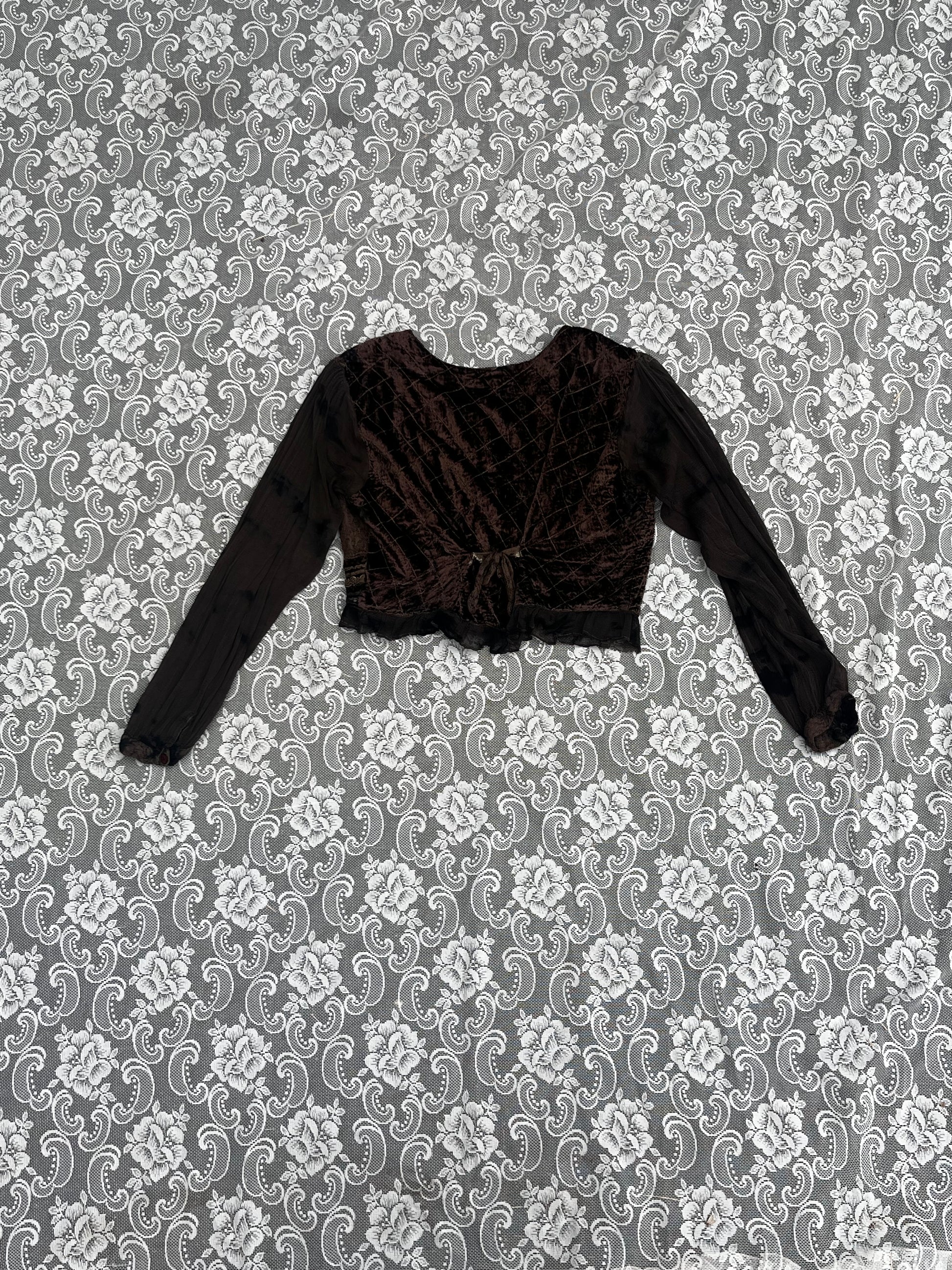 as-is brown velvet embroidered blouse
