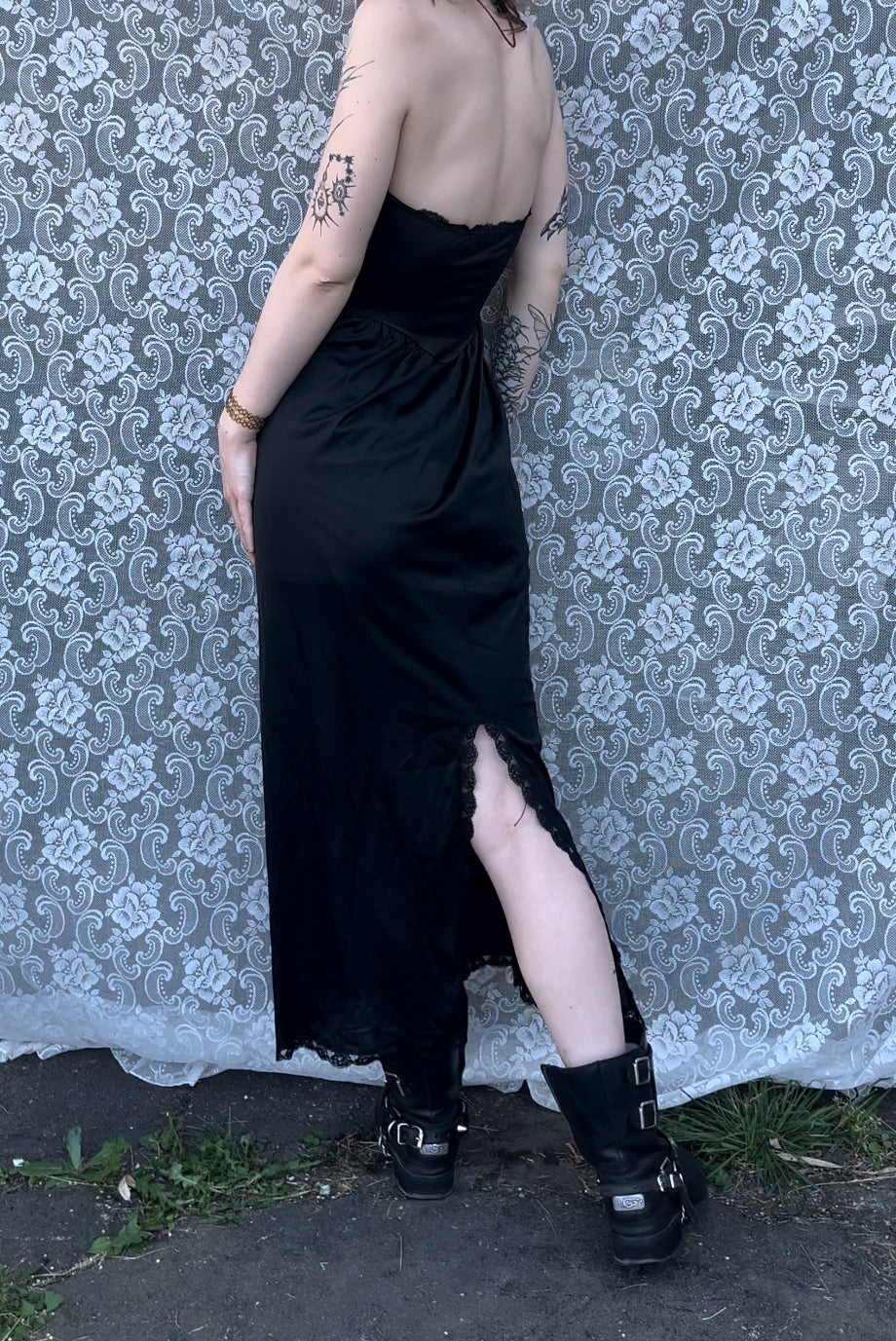 AS-IS long black strapless slip dress