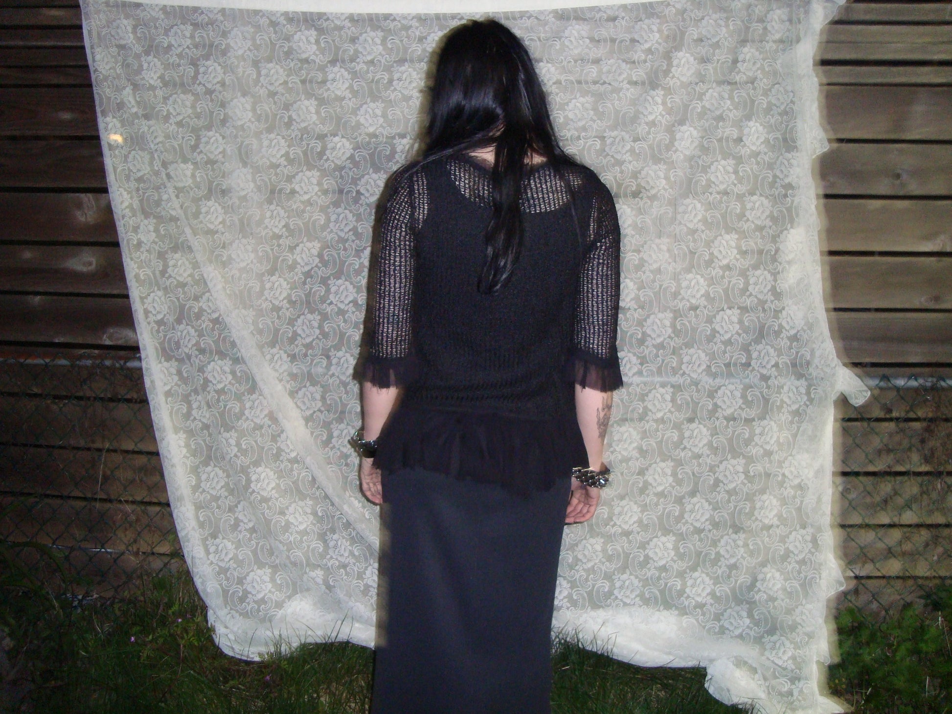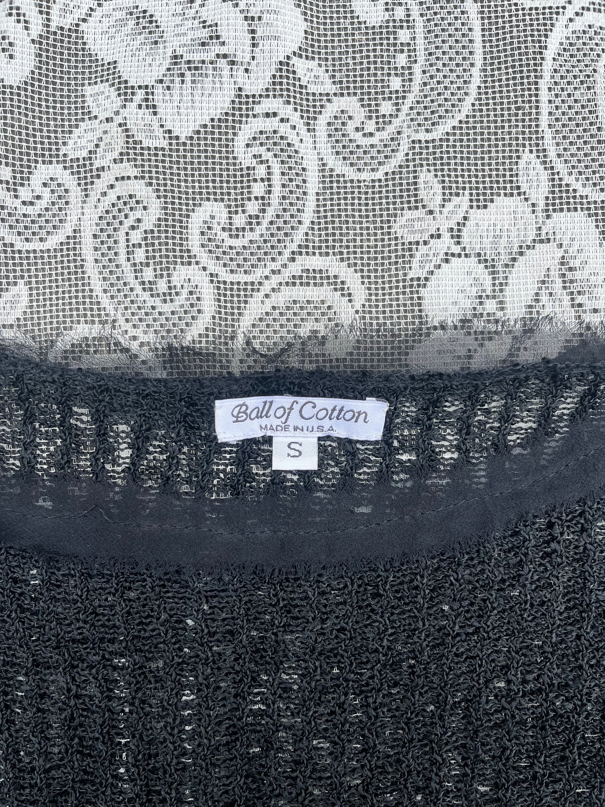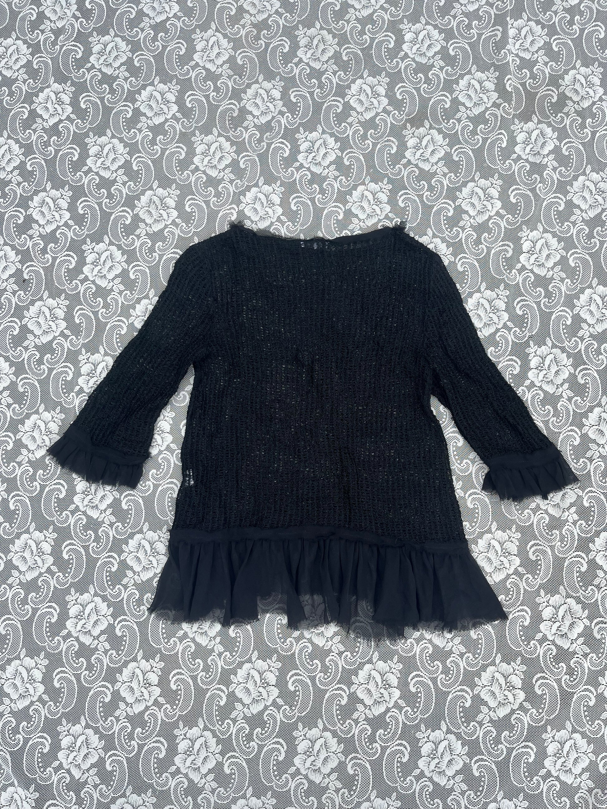 black loose knit mesh ruffle blouse