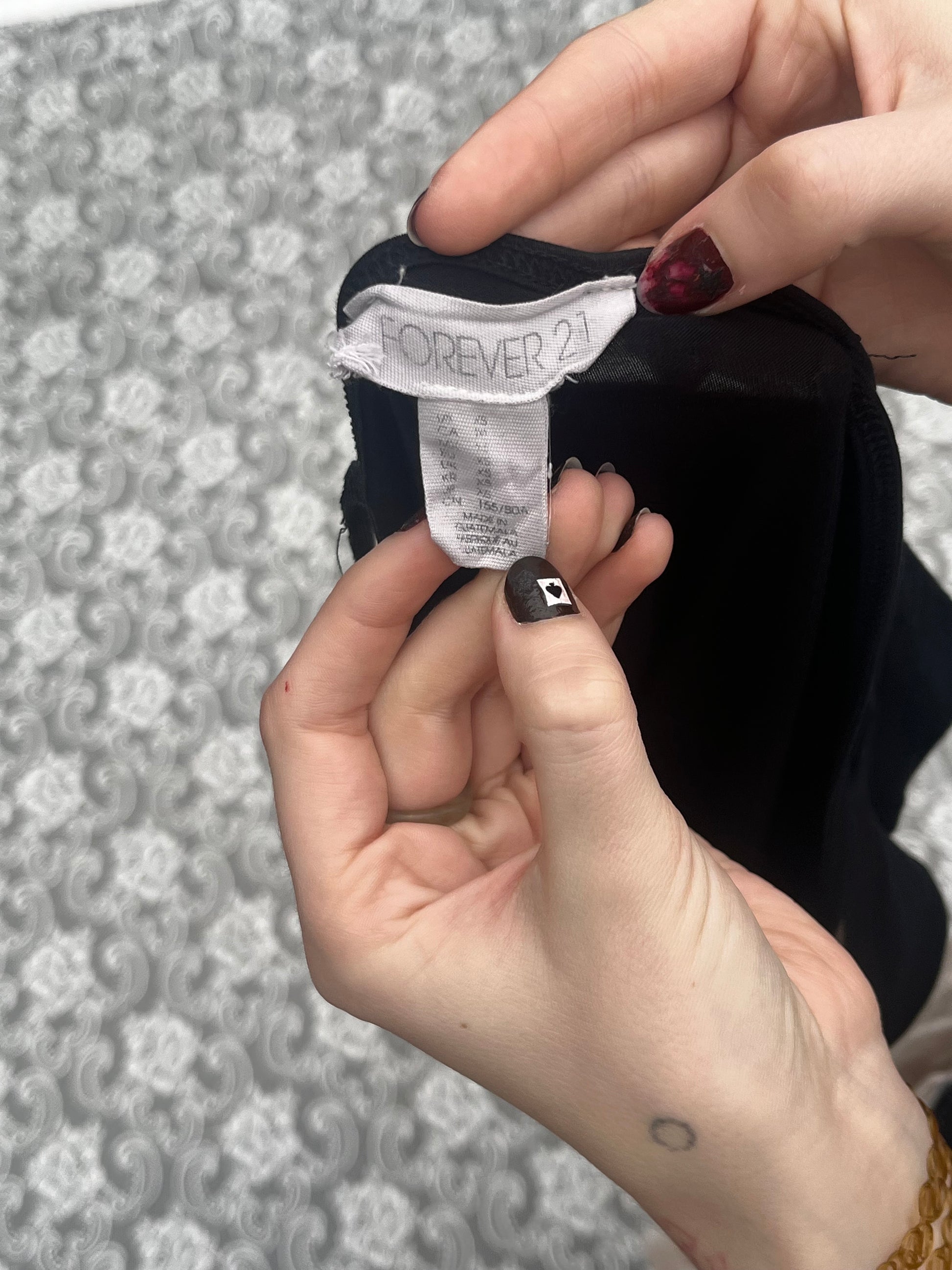 super flattering lil screenprinted number with water based ink. has some printing errors. tag says size XS but it’s stretched a bit. length 24 inches with the straps and 19 without the straps.
