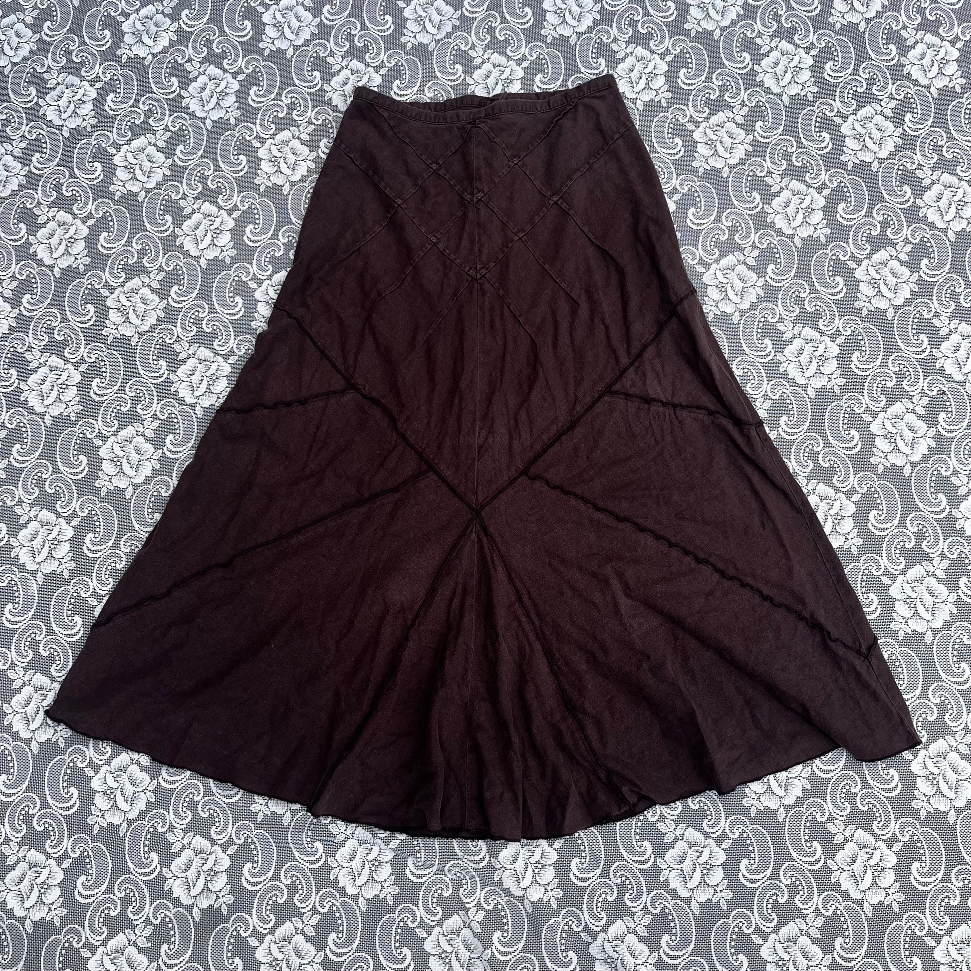 brown geometric seam skirt