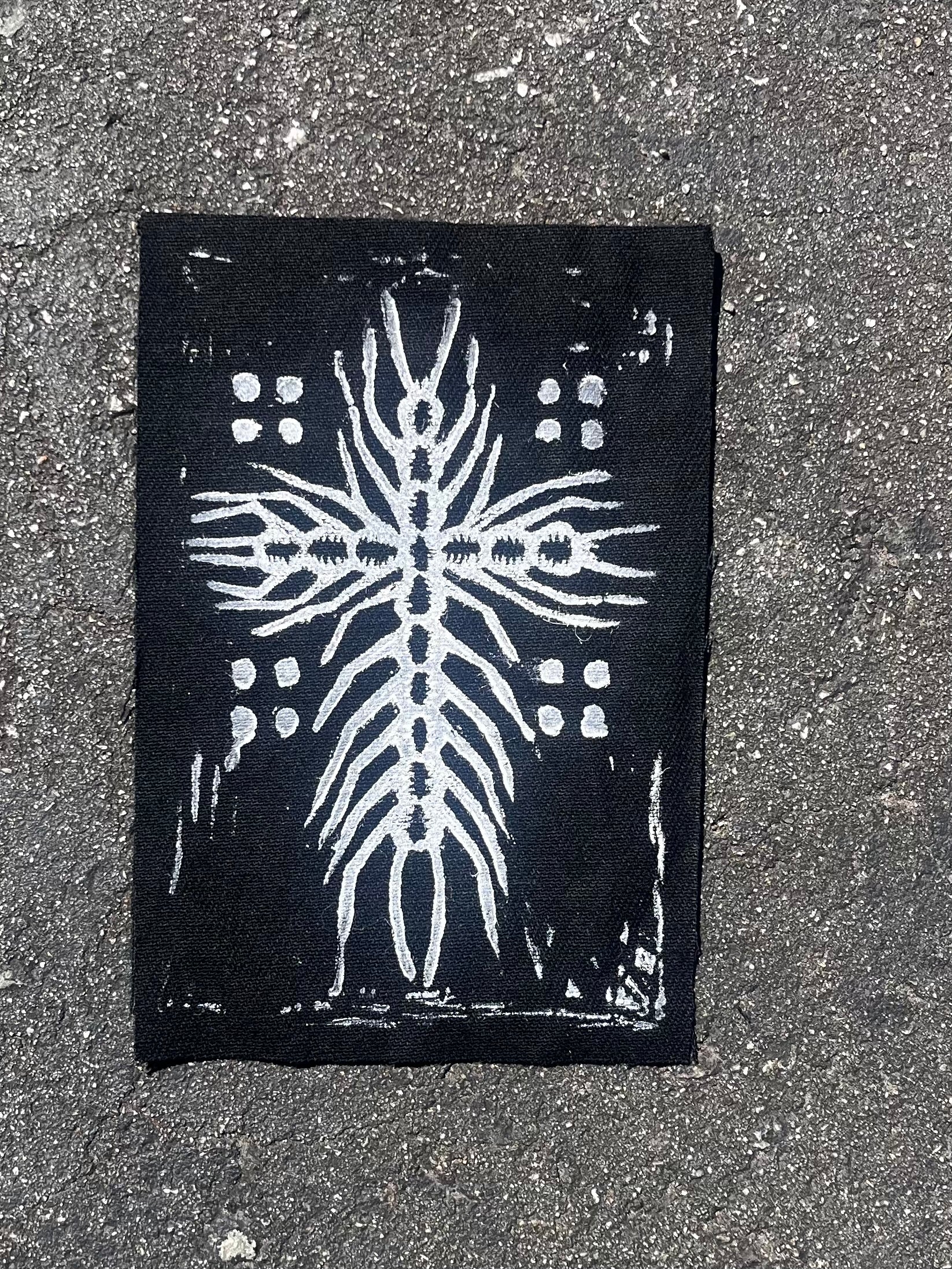 hand designed hand drawn hand made patches! they’re roughly 4x6 inches with varying amounts of fabric around the edges. available in 4 different fabrics! the black ink is water based and the white and brown inks are oil based.