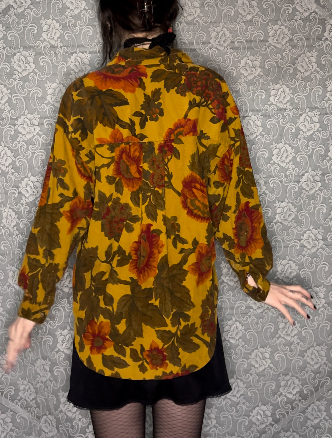 corduroy floral button up