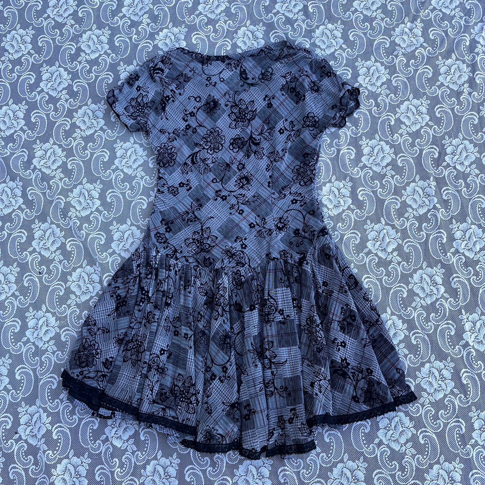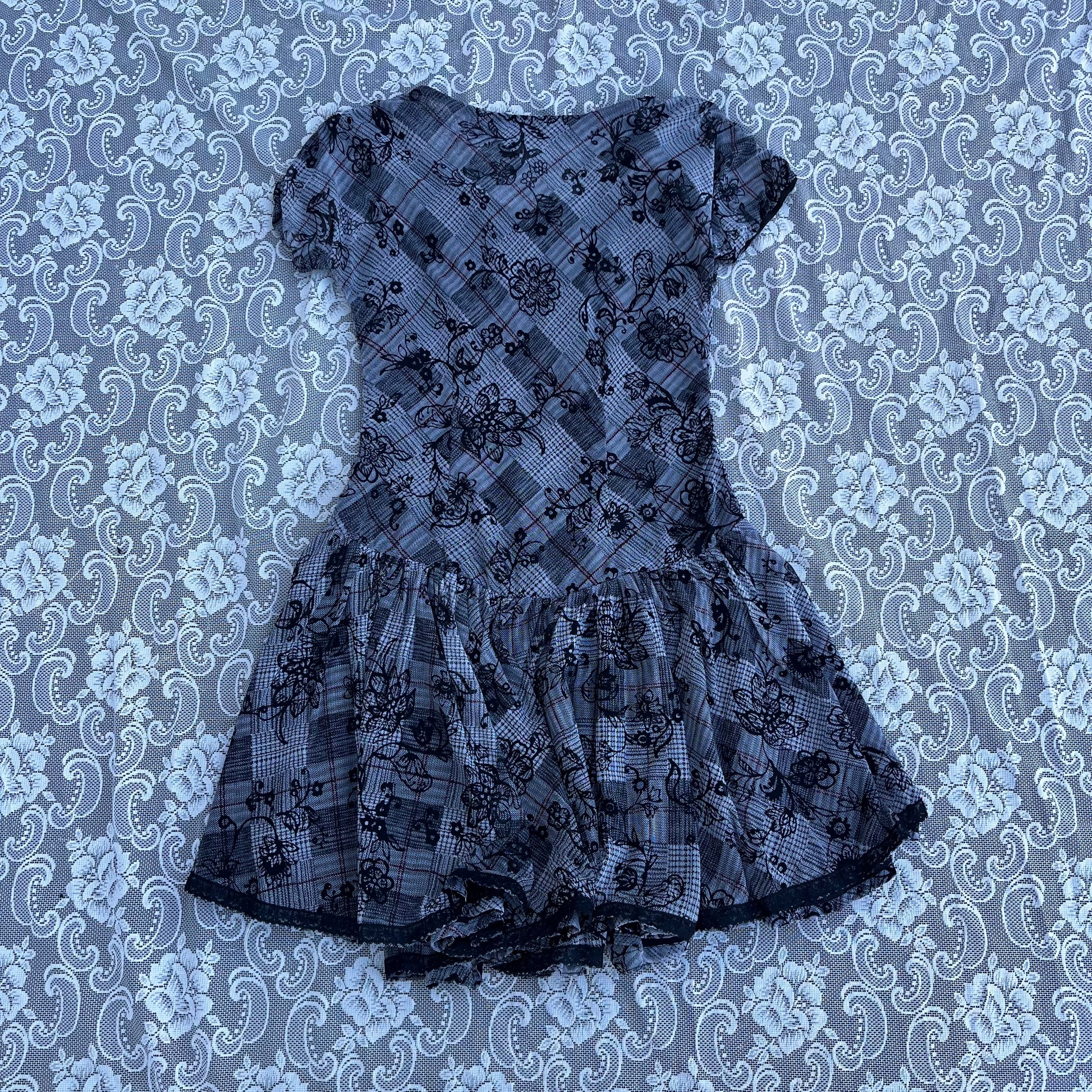 handmade grey floral mesh dress