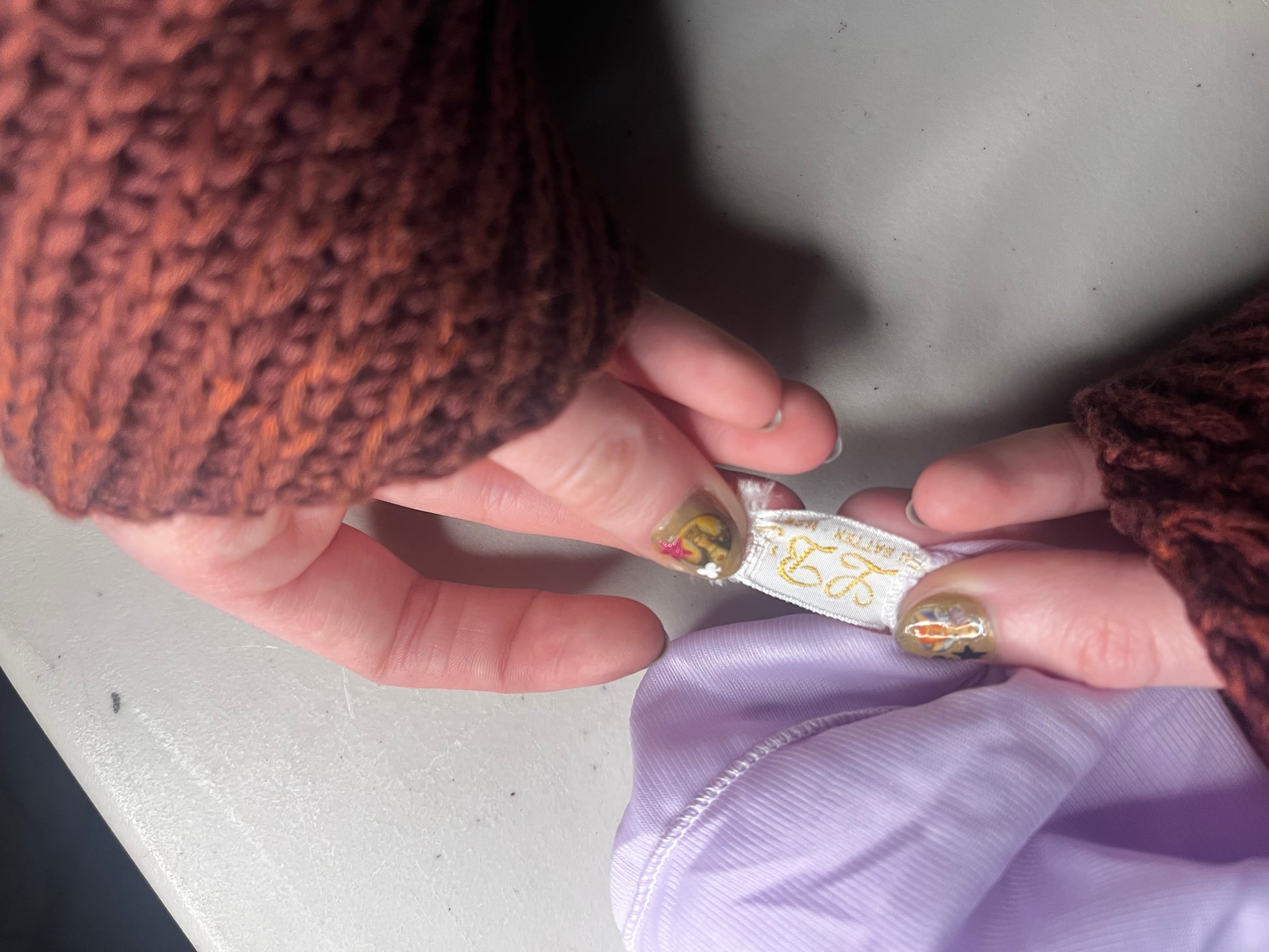 literally such a banger so fucking awesome. short lil lavender/purple mini skirt with white lace trim. waist fits 18-36 inches and the length is 14 inches before lace and 16 inches with lace.