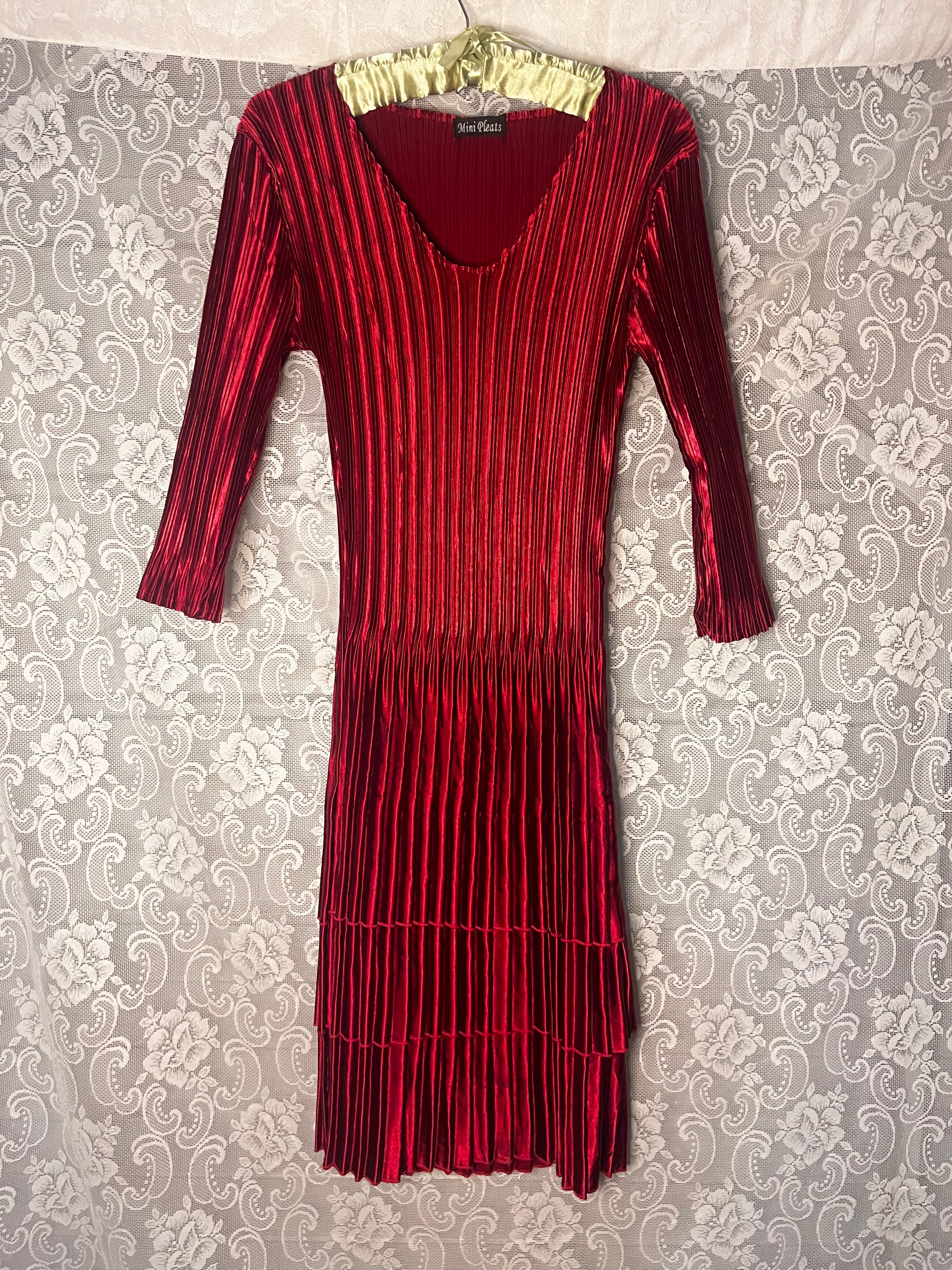 red mini pleats dress
