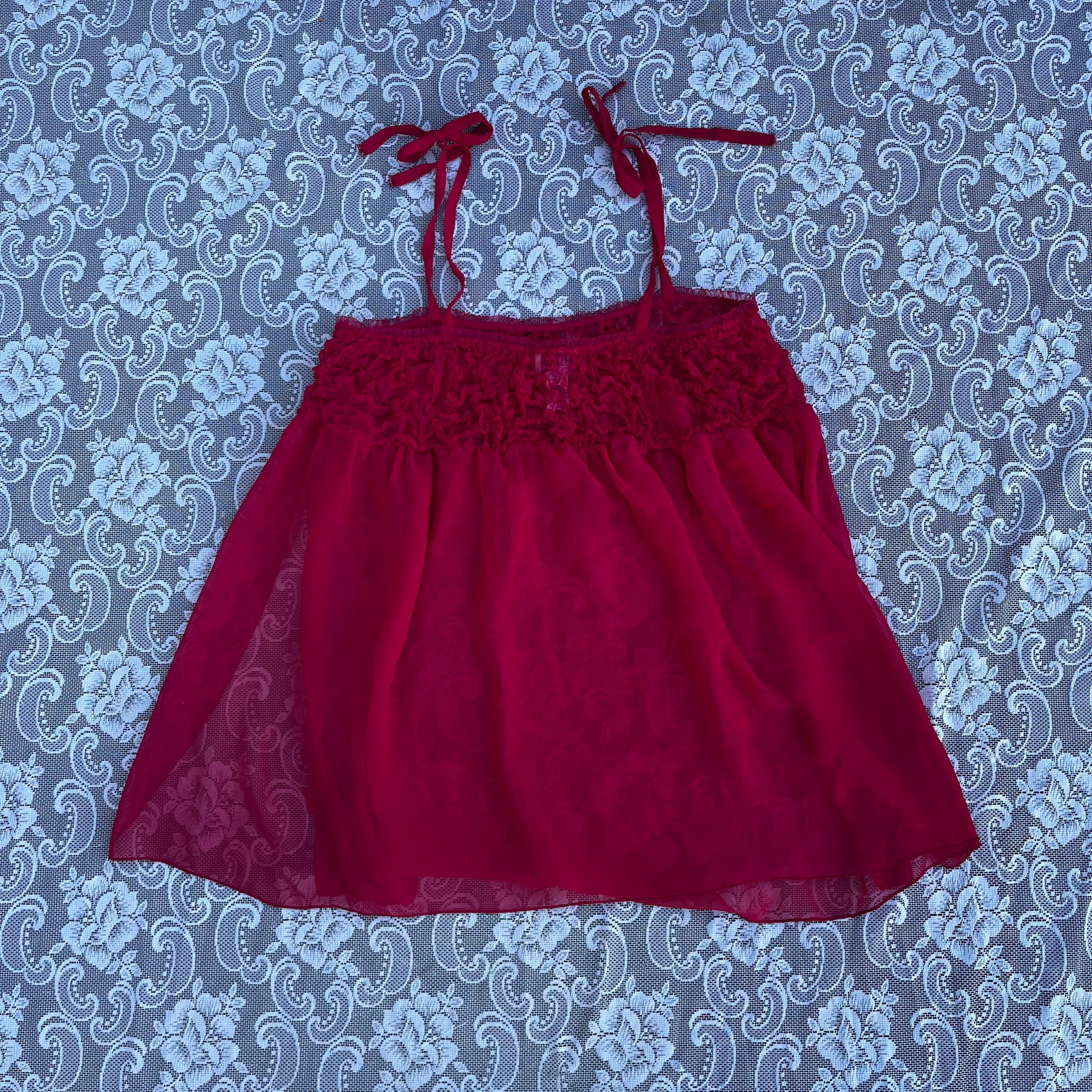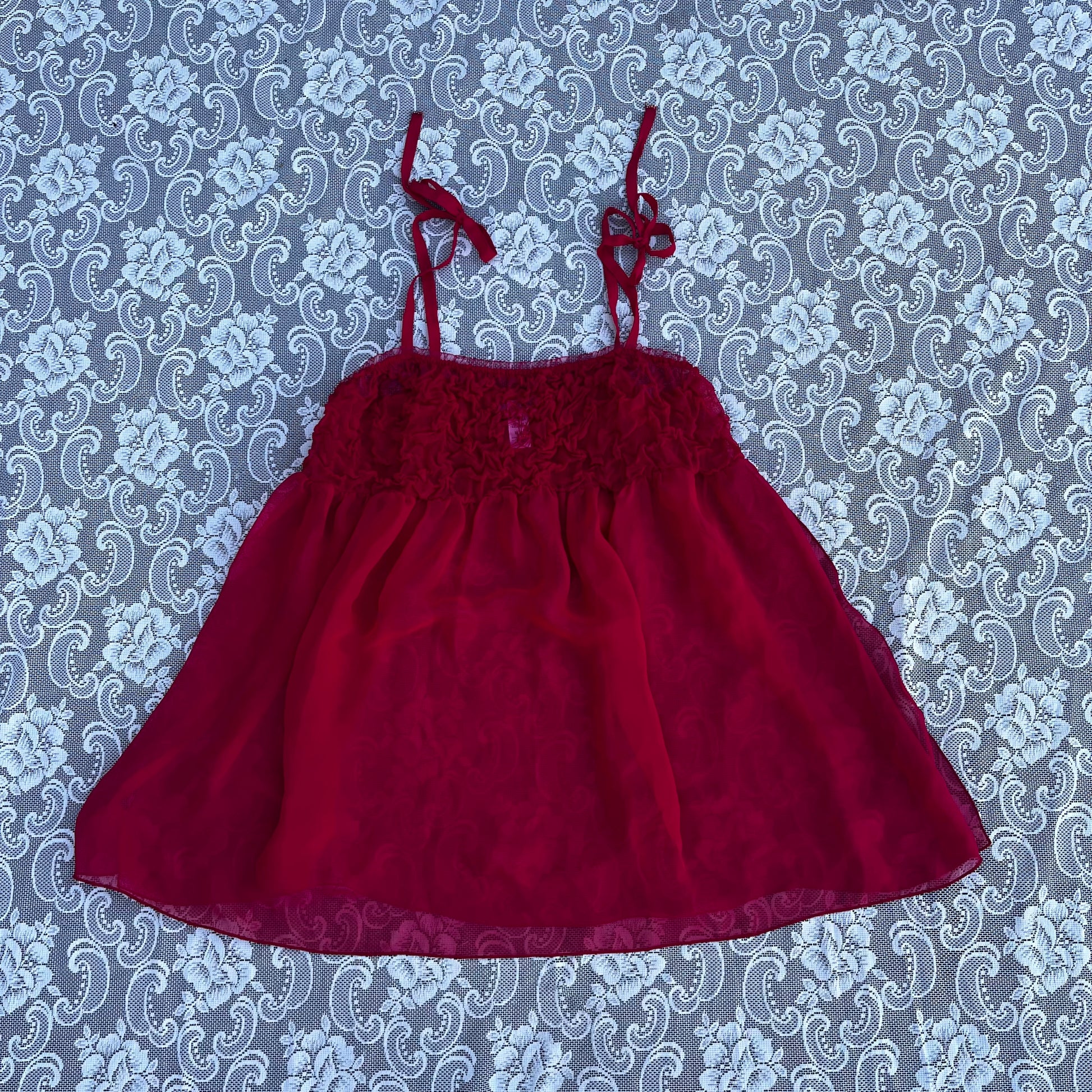 red ruched sheer babydoll slip dress