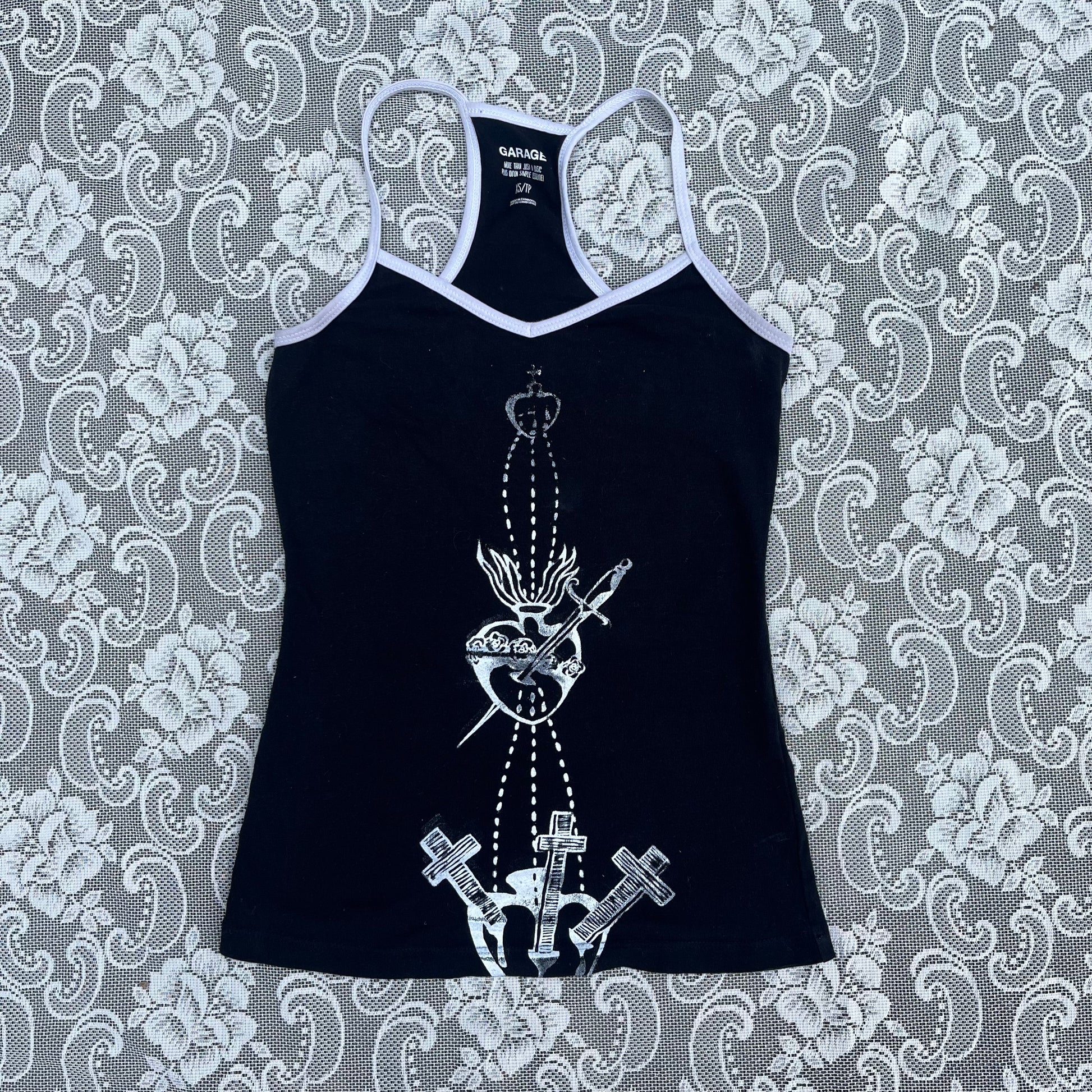 screenprinted by yours truly. obviously the design didn’t fit on this blank so the price is reduced LOL. on an XS garage tank top.