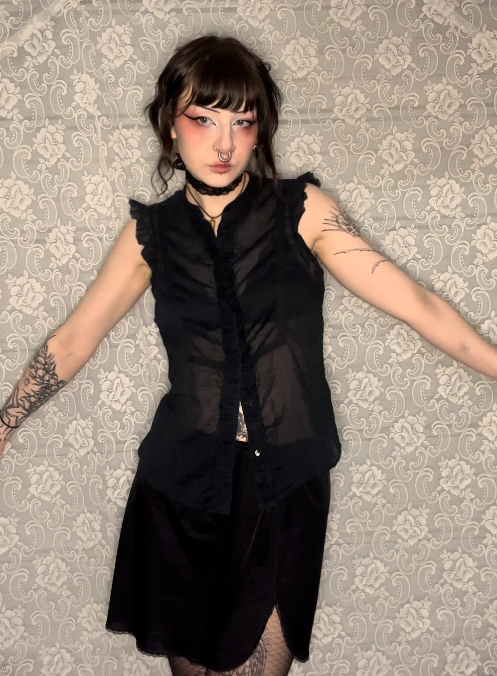 sleeveless ruffled button up