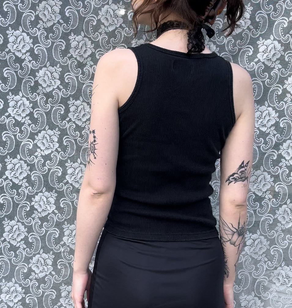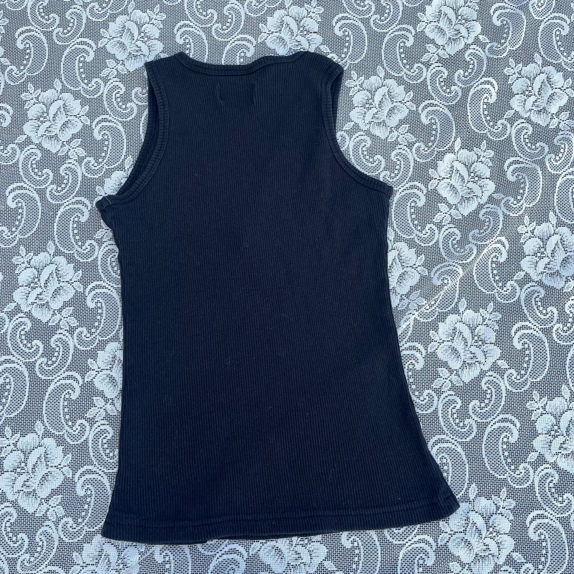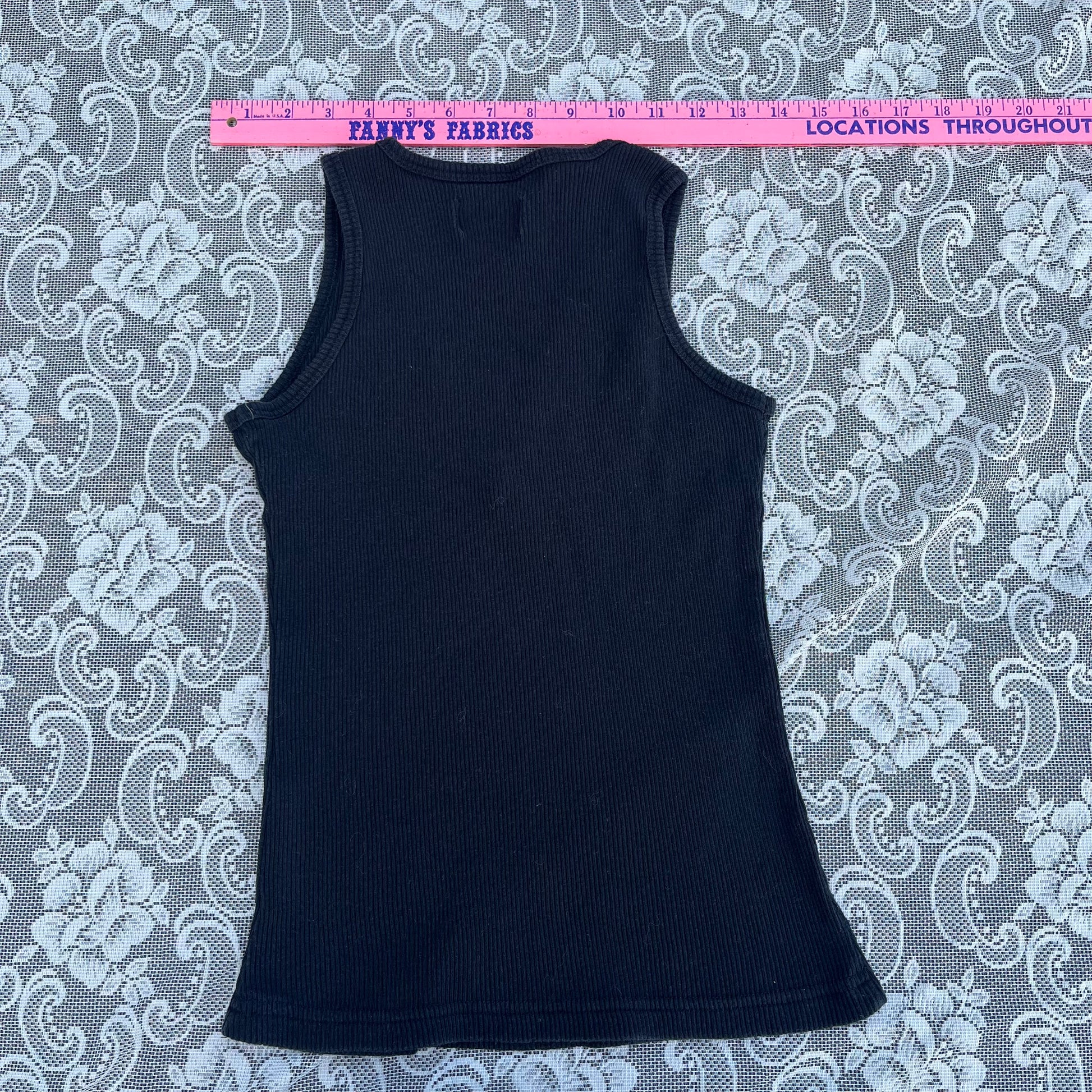 super cute lil biker tank top. doesn’t have a lace for the lace up bit but if U rly want one dm me i can find u one LOL …. length is 21 inches and waist fits 24-36 inches. tag says size medium.