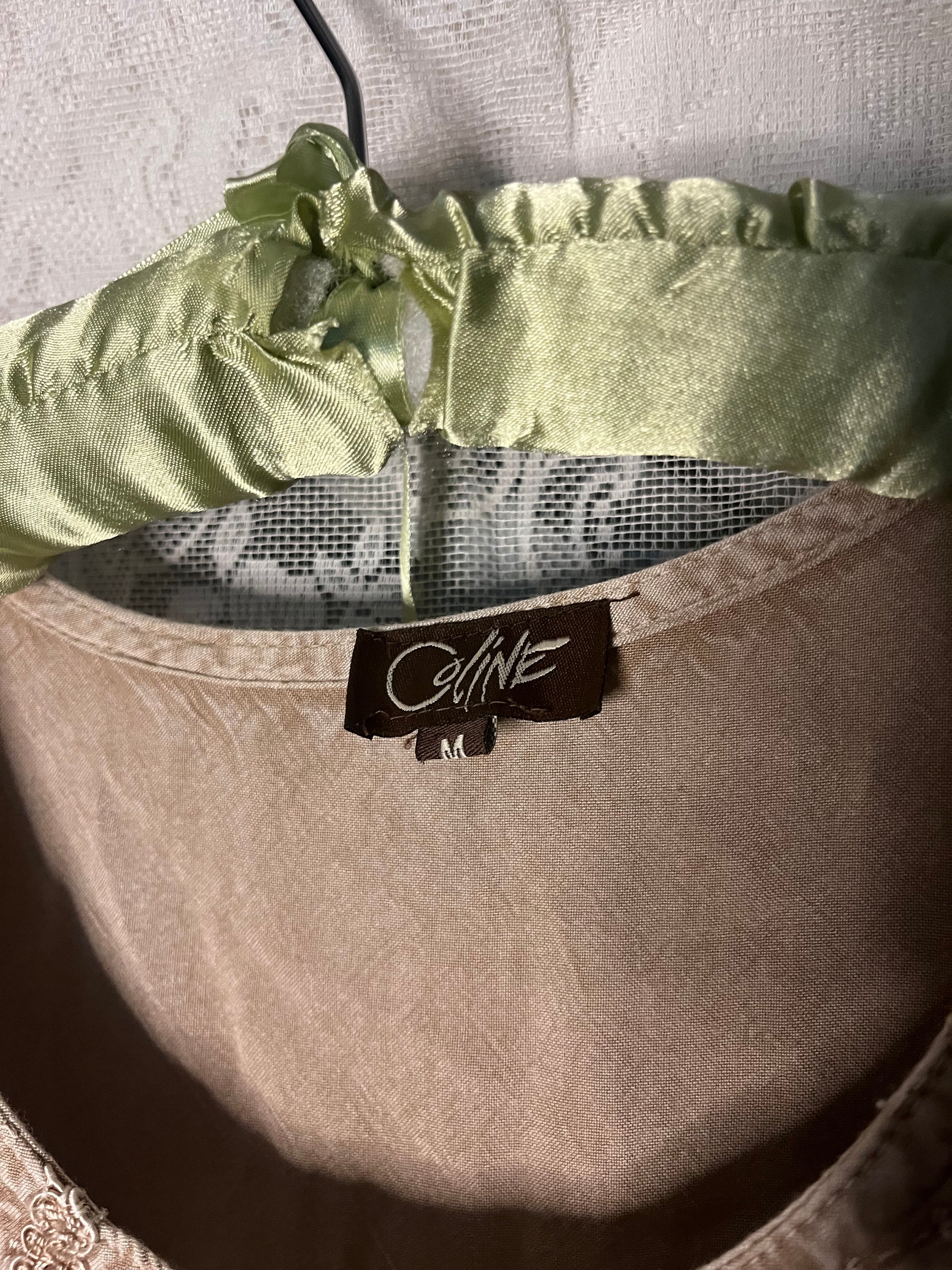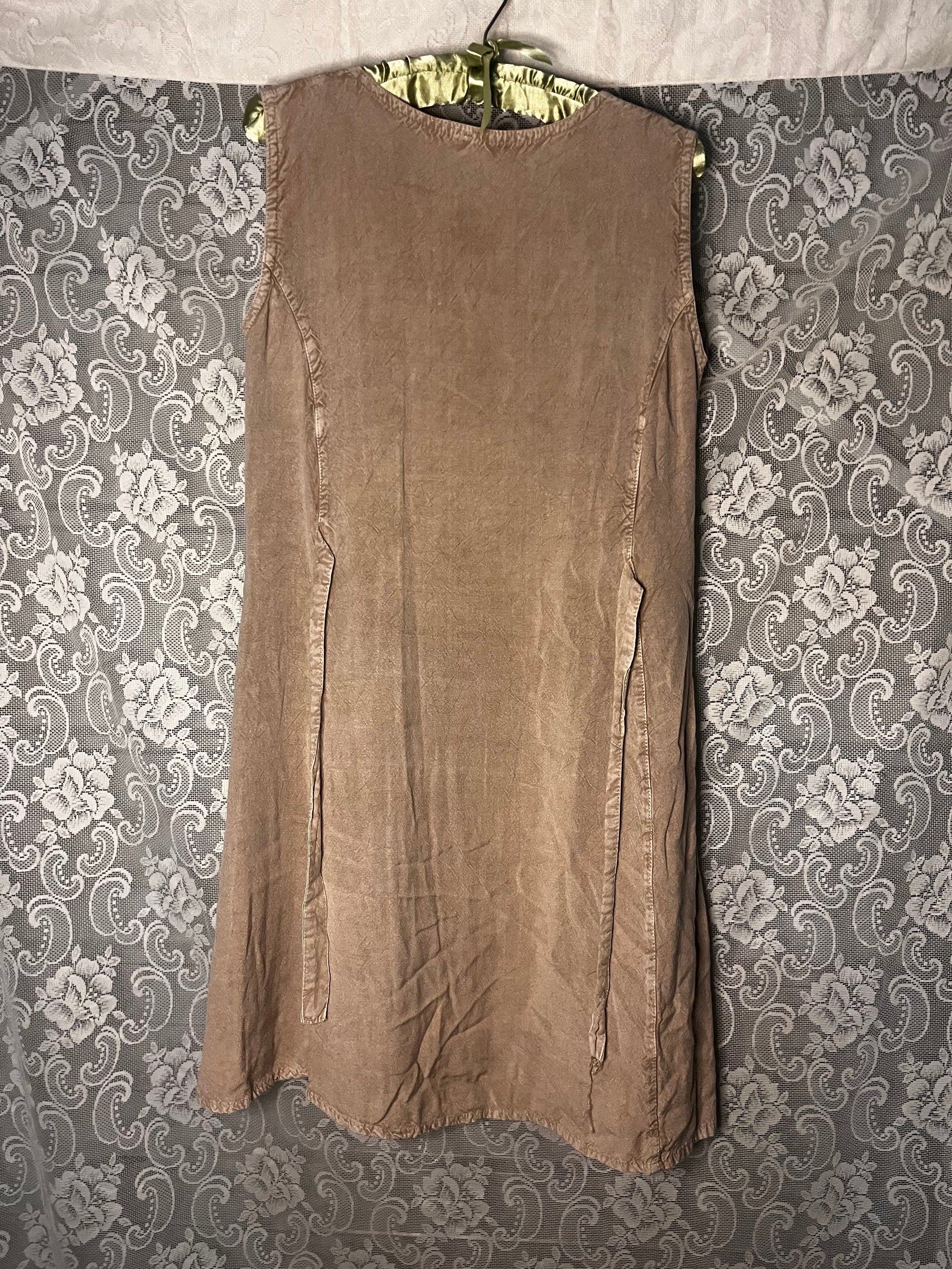 cute lil hippie dress. tag says size M but it’s got strings on the back if u wanna make it tighter around the waist. length from top to bottom is 36 inches and the waist goes up to 38 inches.