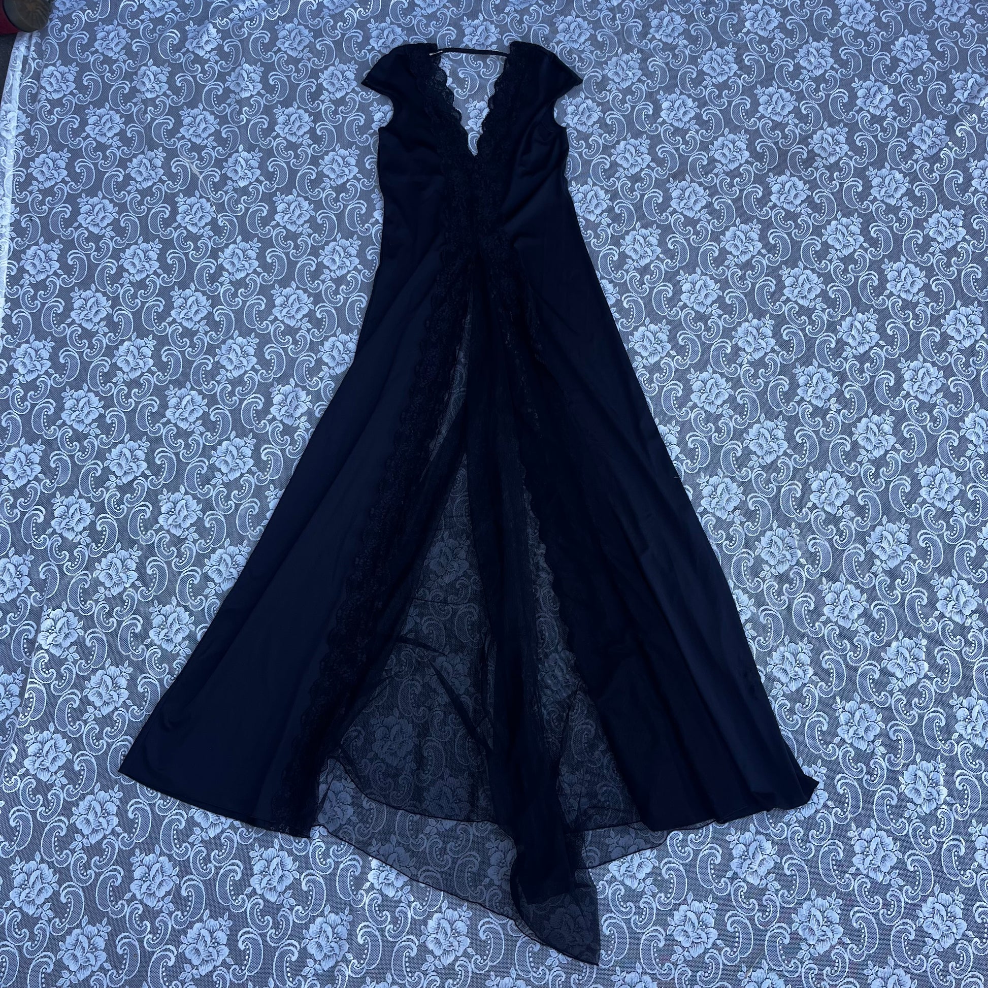 very long black sheer panel slip dress (as-is)