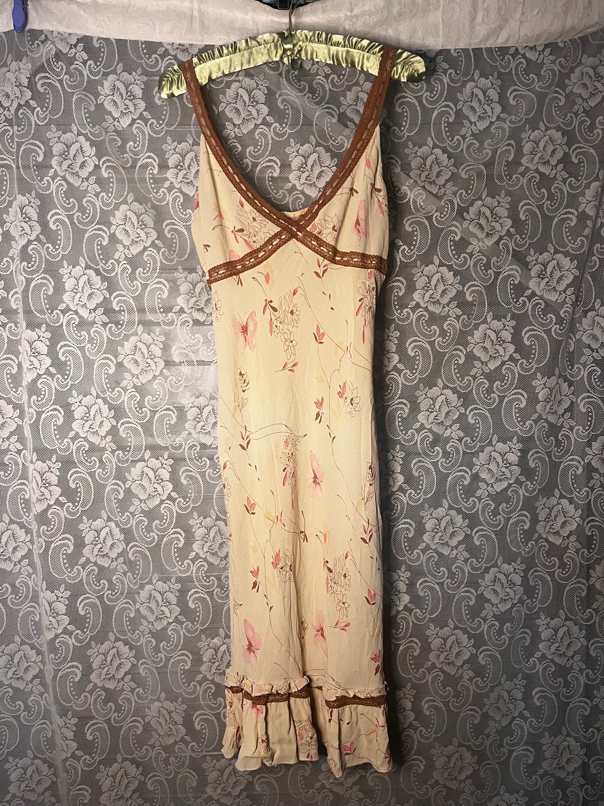 vintage 90s tan floral dress