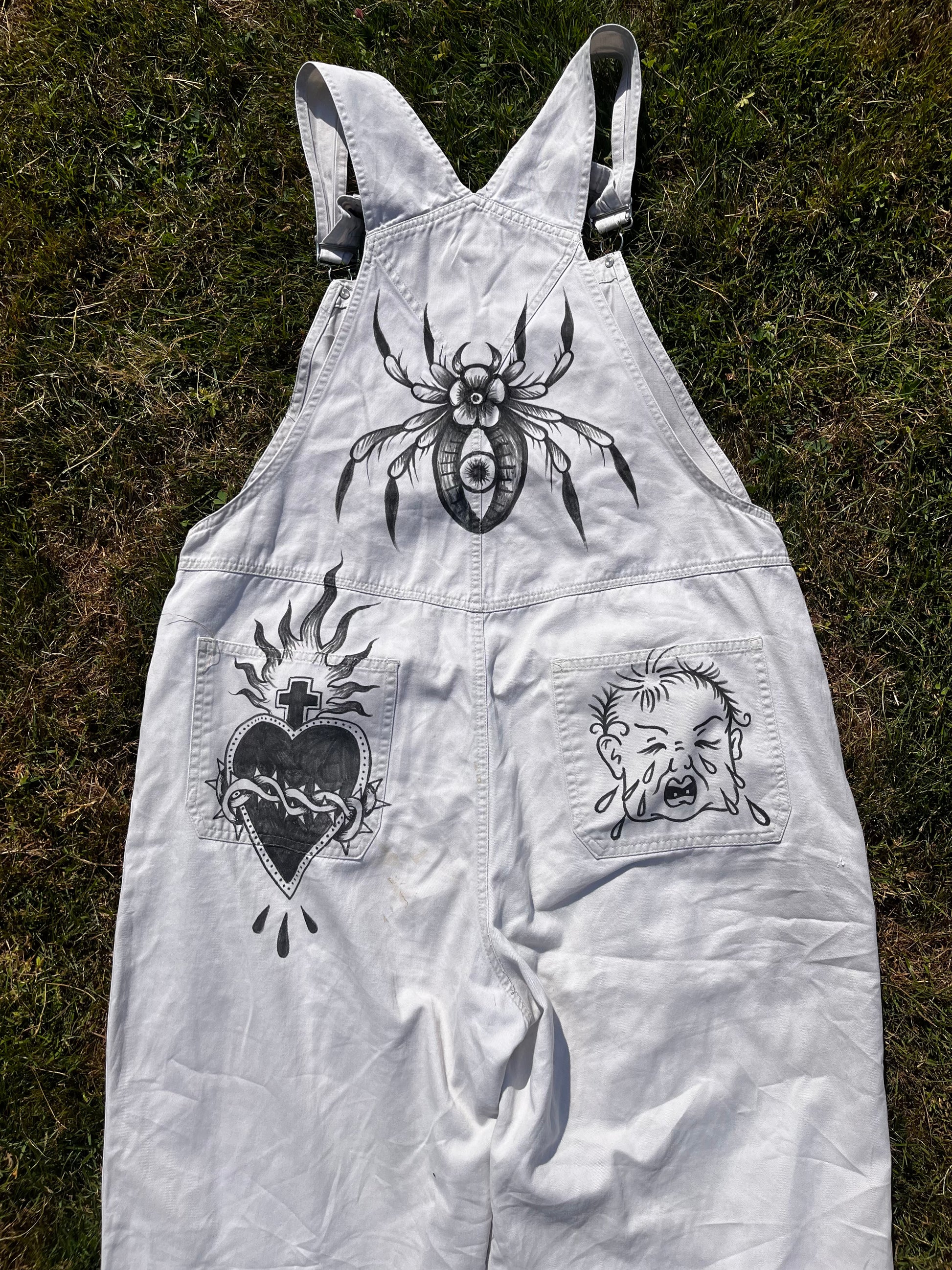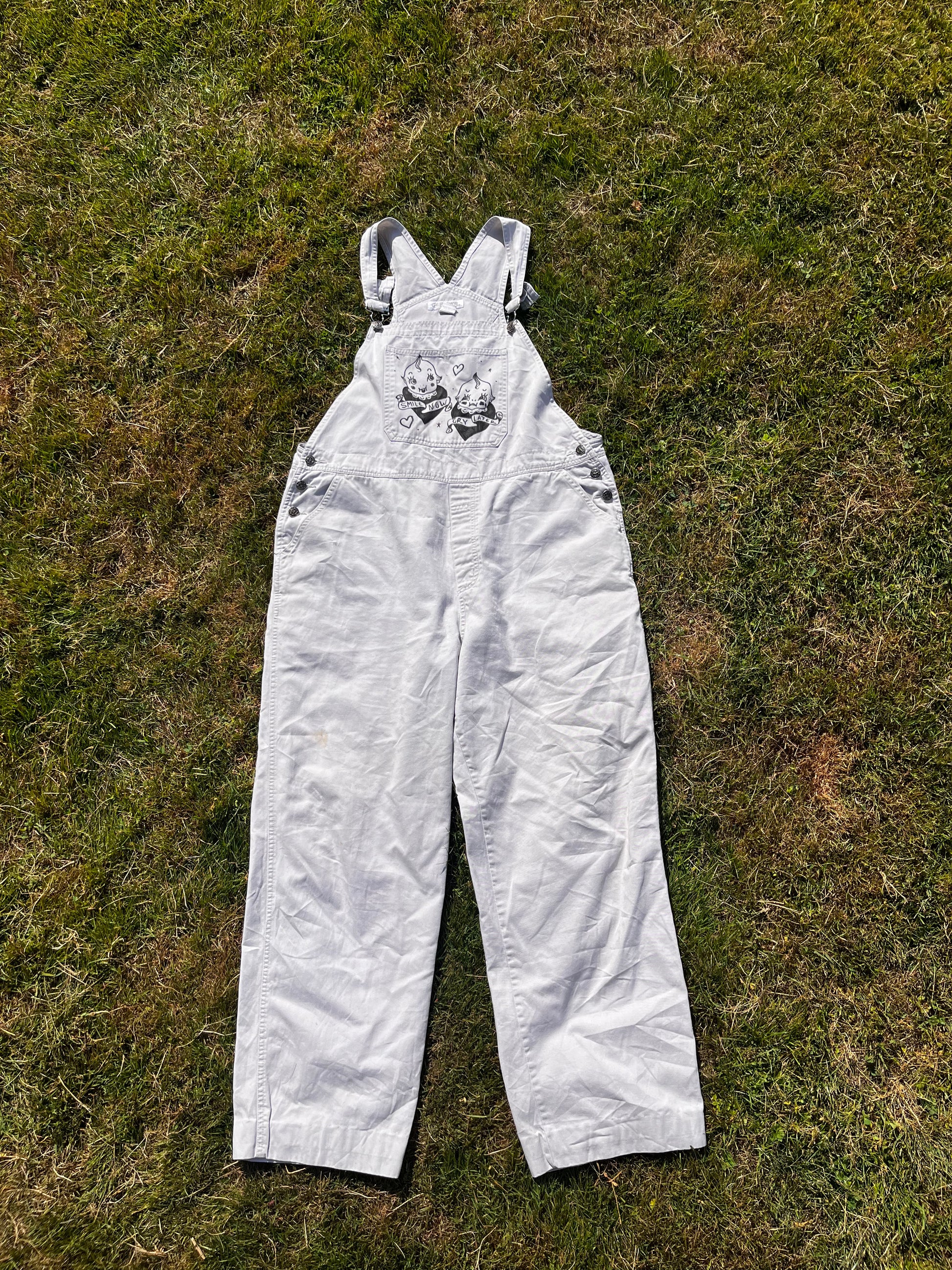 white tattoo smile now cry later trad overalls (art by @digitallynali!!!)