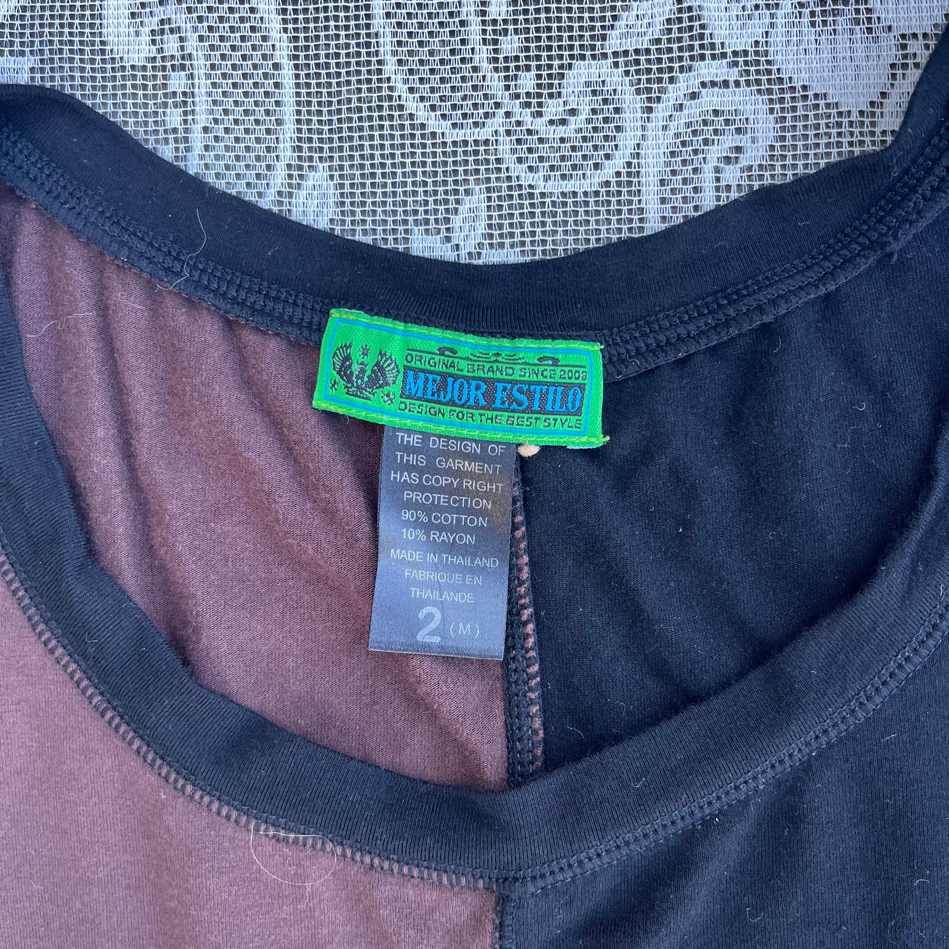 super cute stretchy soft comfy dress from a brand that i cannot find any info on. tag says size 2, or medium. shoulder width 11 inches. pit to pit 16 inches. waist 28 inches. skirt portion length 13 inches. total length 34 inches.